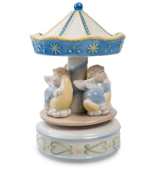 Музыкальная карусель «Ангелочки» - это изящное интерьерное украшение, которое к тому же станет хранителем ваших самых сладких сновидений. Карусель выполнена из тонкого белоснежного фарфора и разукрашена нежными пастельными красками. На карусели безмятежно кружатся маленькие ангелочки, усыпленные красивой тихой мелодией.