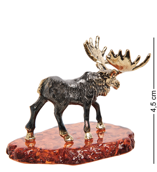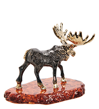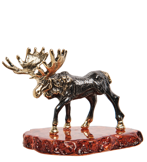Небольшая фигурка «Лось» (ее высота – всего 4.5 сантиметра) сделана из янтаря и латуни. Серебристый лось неторопливо шествует по своим лесным владениям; он спокоен и уверен в себе. Лось худощав, но имеет огромные рога, которые вырастают у лосей к концу лета. Лесной обитатель расположен на плоской янтарной подставке овальной формы.