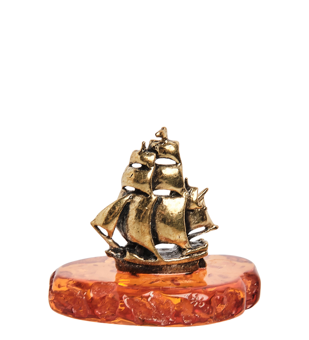 AM- 352 Фигурка «Кораблик» (латунь, янтарь)