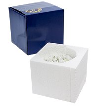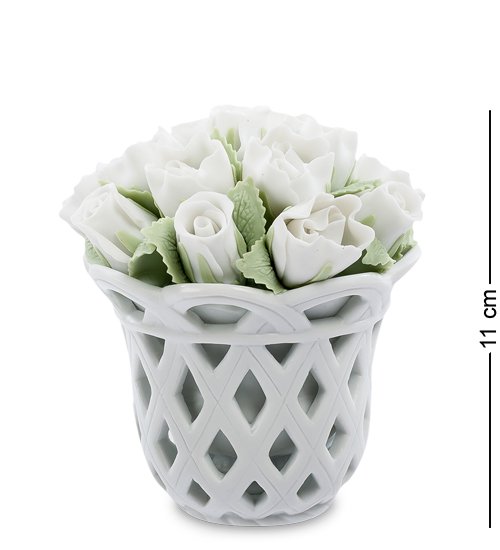 Элегантная корзина, заполненная белыми розами с бледно-зелеными листьями. Каждый лепесток настолько естественно выглядит, что не верится, что это – фарфор. Белый цвет – символ чистоты и молодости, белые цветы дарят невесте и просто молодой девушке. Прекрасное творение мастеров изысканного фарфора поражает своей естественностью и сходством с живой природой. От естественного букета эта корзина отличается еще и тем, что никогда не завянет. Подарите эту изысканную цветочную композицию, и она будет долгие годы напоминать о вас, и пожелание чистой и светлой любви будет всегда актуальным и искренним.