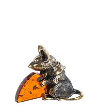 AM- 461 Фигурка «Мышка с сыром» (латунь, янтарь)