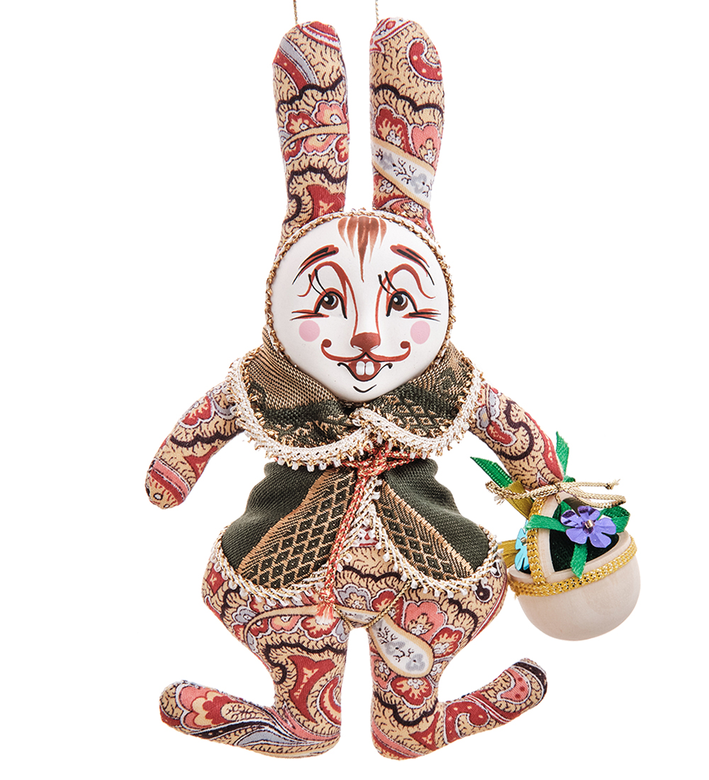 Забавная подвесная кукла “Кролик” станет украшением любого интерьера. Кукла выполнена в задорном, игривом стиле, глядя на нее, невозможно не улыбнуться! Фигурка пошита из прочной красивой ткани, на ваш вкус возможны два цветовых решения. Фарфоровое личико искусно расписано акриловыми красками, что позволяет легко ухаживать за куклой.
