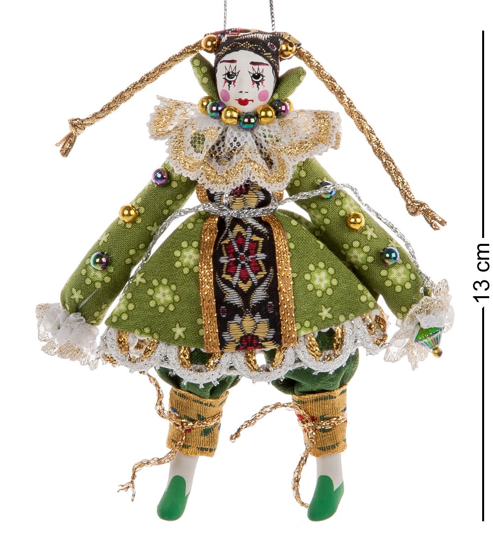 Карнавал в Венеции всегда впечатляет гостей своим размахом — красиво одетые дамы и господа приплывают на гондолах и демонстрируют свои безупречно сшитые костюмы. С ювелирной точностью создана и эта кукла – подвеска. Ведь мастер использует помимо текстиля, украшения в виде цветных бусин и золотой тесьмы, которая служит поясом к наряду. Образ получился потрясающим. Такая кукла станет прекрасным украшением Новогодней елки или приятным подарком ребенку.