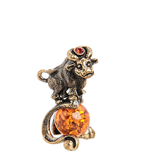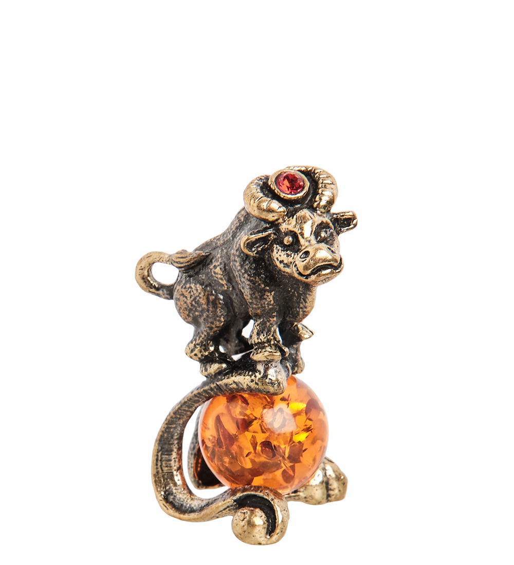AM- 322 Фигурка «Знак зодиака - Телец» (латунь, янтарь)