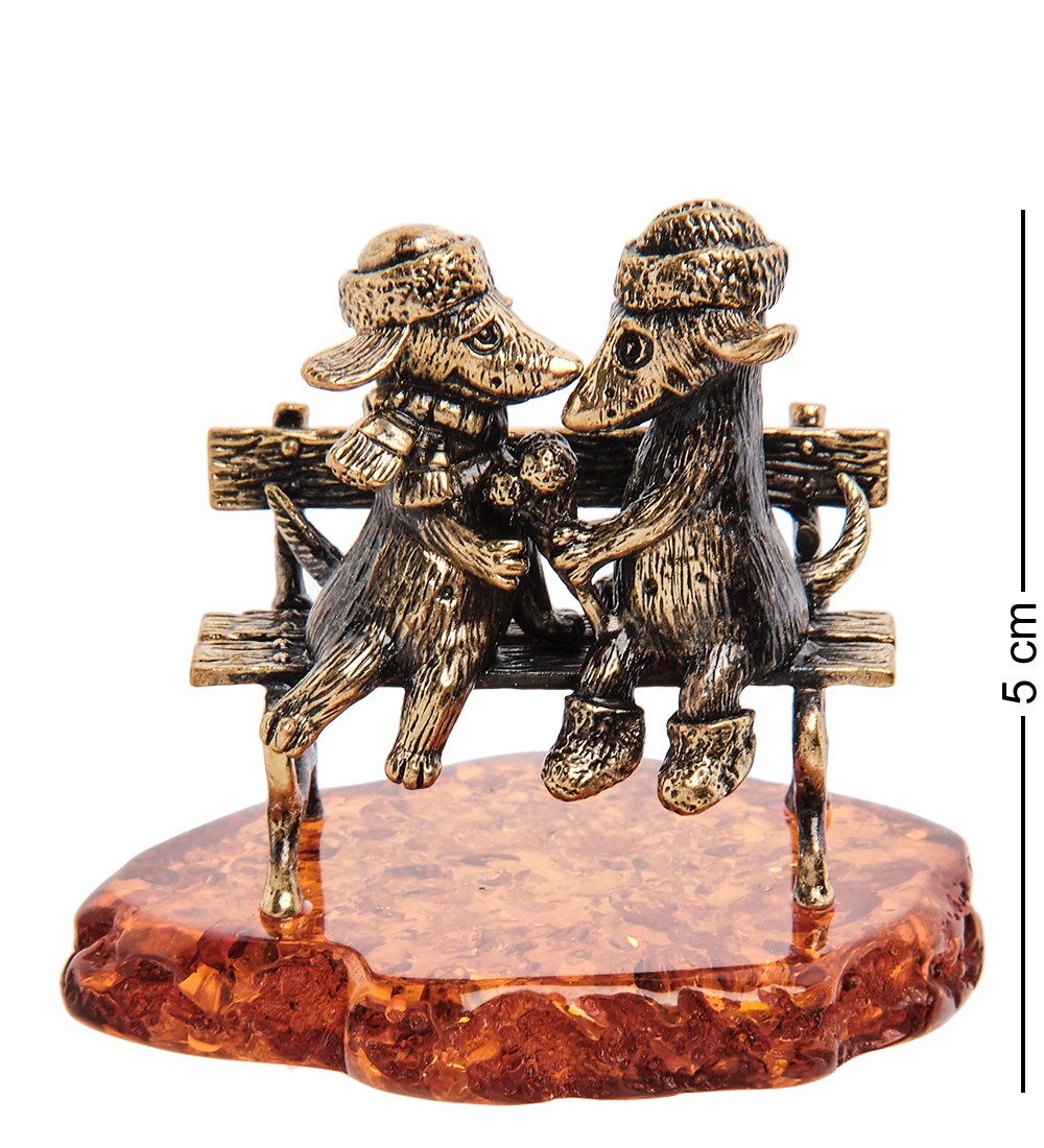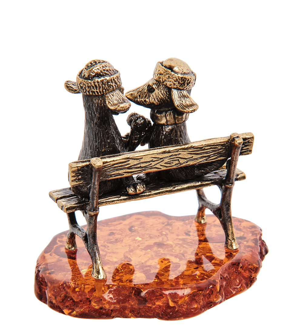 AM- 326 Фигурка «Пара собак с мороженым» (латунь, янтарь)