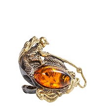 AM- 526 Фигурка «Рыба с рыбаком» (латунь, янтарь)