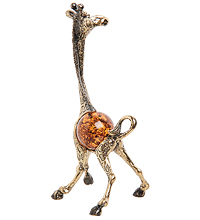 Жирафы, исключительно мирные травоядные животные, обитают в Африке, и увидеть их в Москве можно, лишь посетив городской зоопарк. Симпатичное существо, обладающее массой внешних достоинств, буквально создано для украшения дома: как жаль, что для него нет места в квартире! Маленькая фигурка «Жираф», сделанная из латуни и янтаря, имеет высоту всего 8 сантиметров, и сможет украсить любое помещение, не занимая драгоценного пространства.
