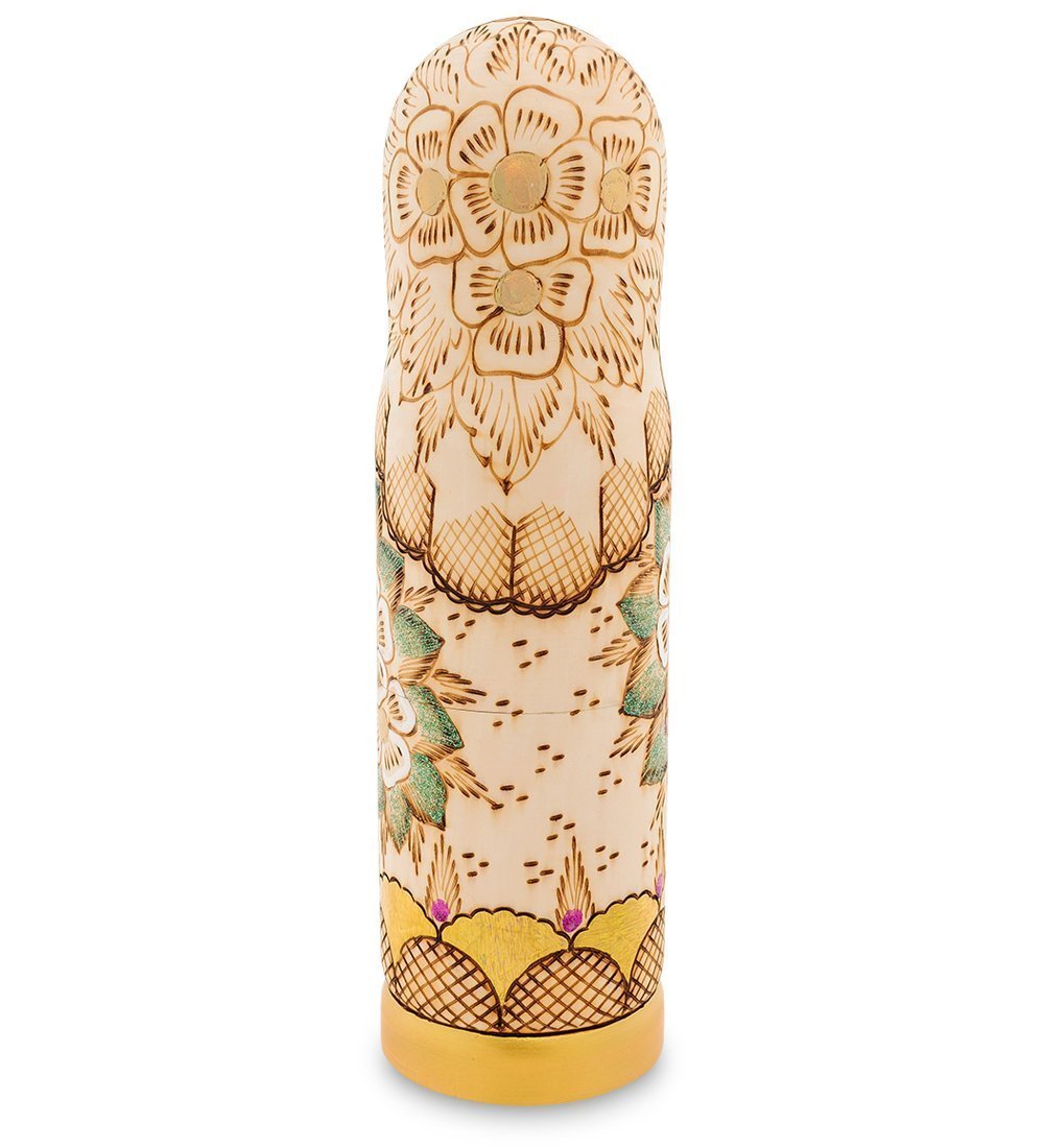 Футляр для бутылки «Грушенька» имеет высоту 38 сантиметров и предназначен для хранения емкости объемом 0.5 литра (классической «поллитровки»). Футляр ярко оформлен: на него нанесен рисунок, схожий с рисунками, которые наносят на матрешки. Верх (колпачок) украшен лицом молодой девушки с большими черными глазами и покрытыми фиолетовым румянцем щеками.