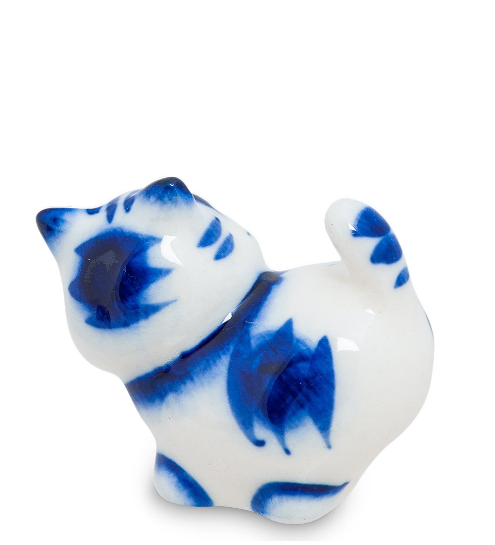 ГЛ- 203 Фигурка «Кот-Хвост» (Гжельский фарфор)