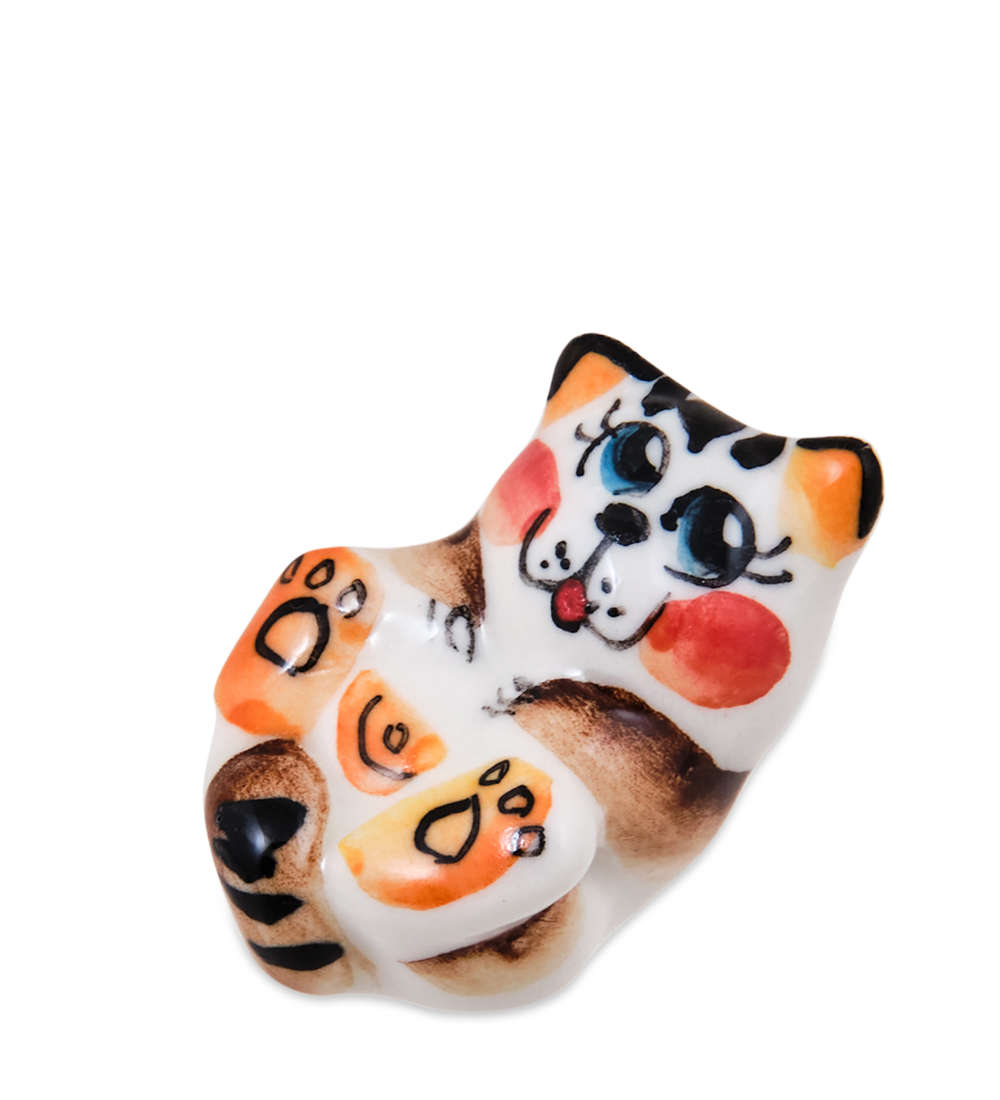 ГЛ- 153 Фигурка «Кот на спине» цв.(Гжельский фарфор)