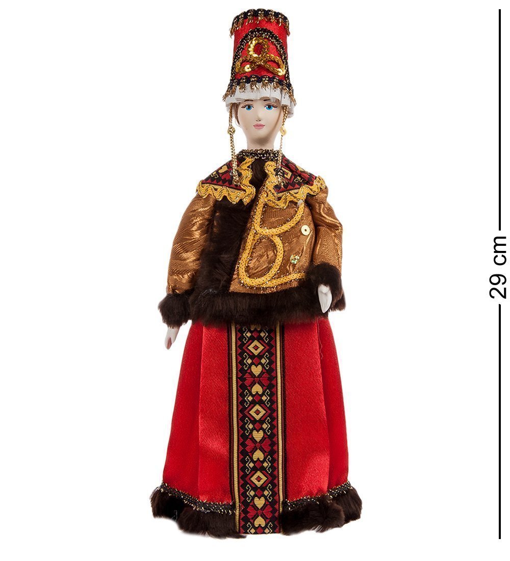 Кукла ''Лидия'' Одета в русский народный костюм, который является украшением русской культуры. Возникший как рукотворный предмет утилитарного назначения, выражающий эстетические чувства человека, народный костюм одновременно представляет художественный образ, содержательная ценность которого тесно связана с его функциями. Это один из наиболее массовых видов народного творчества и декоративно-прикладного искусства в целом. Русский народный костюм представляет собой целостный художественный ансамбль, несущий определенное образное содержание, обусловленное назначением и сложившимися традициями. Его образуют гармонично согласованные предметы одежды, украшения и дополнения к ним, прическа, головной убор, грим. Кукла выполнена высококвалифицированным специалистом. Для создания куклы мастер использует высококачественный материал. Лицо выполнено из бисквитного фарфора, расписана акриловыми красками. Подарив такой подарок, друзьям и близким Вы не только украсите, но и внесете тепло и уют в их дом. Лидия будет прекрасным подарком ребенку, порадует и взрослых, не равнодушных к кукольному творчеству.