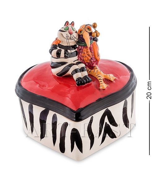 Шкатулка ''Кот Кланси и птичка'' высотой 31 см.