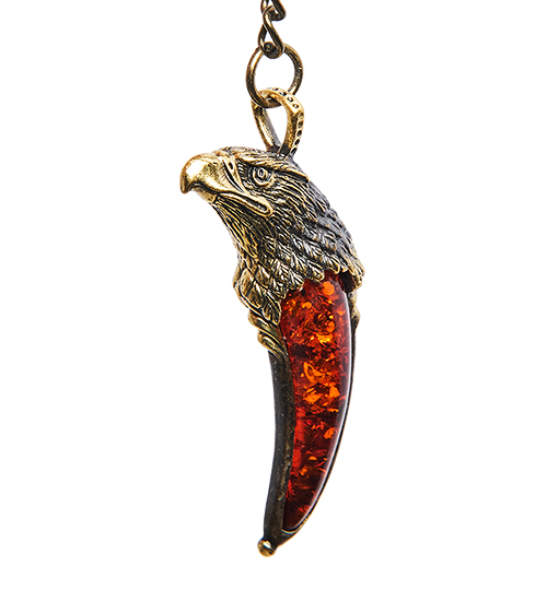 AM- 213 Брелок «Коготь Сокола» (латунь, янтарь)