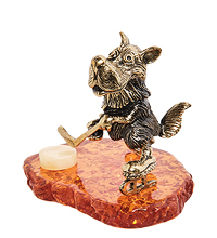 Миниатюрный «Волк хоккеист», сделанный из латуни и янтаря, многим напомнит волка из мультипликационного сериала «Ну, погоди!»: мультипликационный волк тоже не раз надевал коньки и становился на лед. Волк, воплощенный в статуэтке, выглядит значительно добрее, хотя в его глазах горит хищный огонь – огонь спортивной победы.