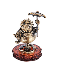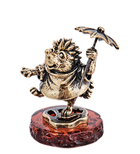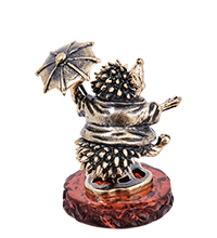 AM- 327 Фигурка «Ежик танец под дождем» (латунь, янтарь)