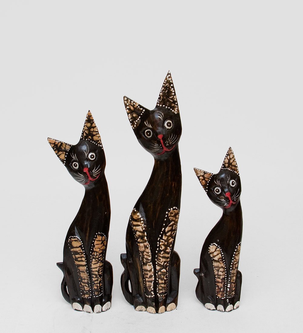 25-023 Фигурка «Кошка» н-р из трех 35,30,25 см, (албезия, о.Бали)