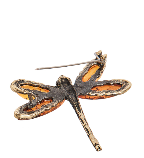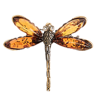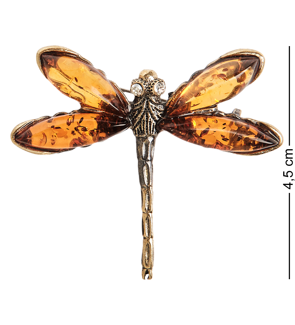 AM- 185 Брошь «Стрекоза» (латунь, янтарь)