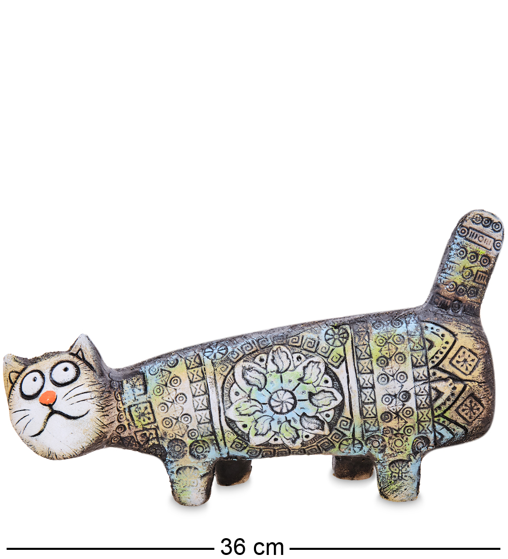 Фигурка "Кот Мартин" длина 35см. Яркая и оригинальная, украсит интерьер вашего дома или рабочего кабинета. Изделия из шамотной глины очень стойкие к атмосферным воздействиям, поэтому скульптуру можно использовать как ландшафтную. Фигурка выполнена квалифицированным художником, использован высококачественный материал. Изделие несет положительную энергетику, дарит своему обладателю силы и вдохновление. Изысканный подарок для творческих и свободолюбивых натур. Подарив такой подарок вы не только порадуете детей, но и взрослых. Он с усами, погляди-ка, Любит громко он мурлыкать.