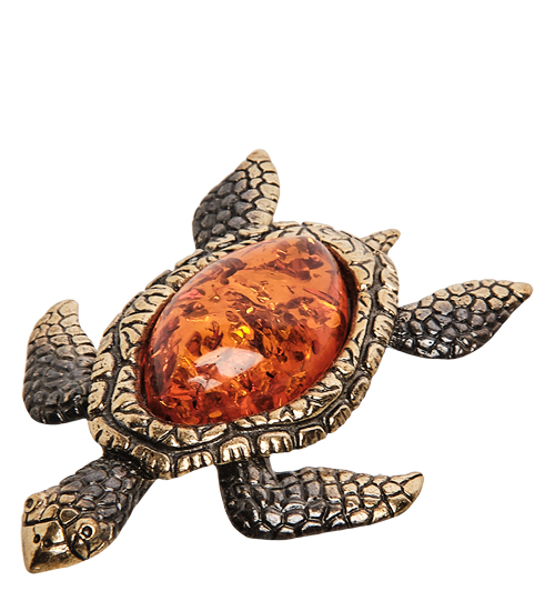 AM- 452 Фигурка «Морская черепаха» (латунь, янтарь)