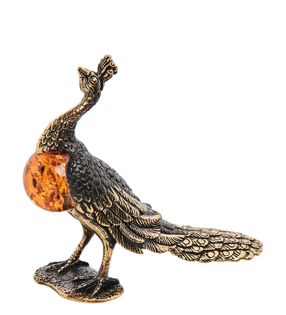 Мы не предлагаем вам заводить глухаря дома, но предложим маленькую статуэтку, изображающую поющего глухаря. Птица сделана из латуни и токует на небольшой плоской янтарной подставке. Хвост самца распушен, и выглядит не менее эффектно, чем хвост павлина.