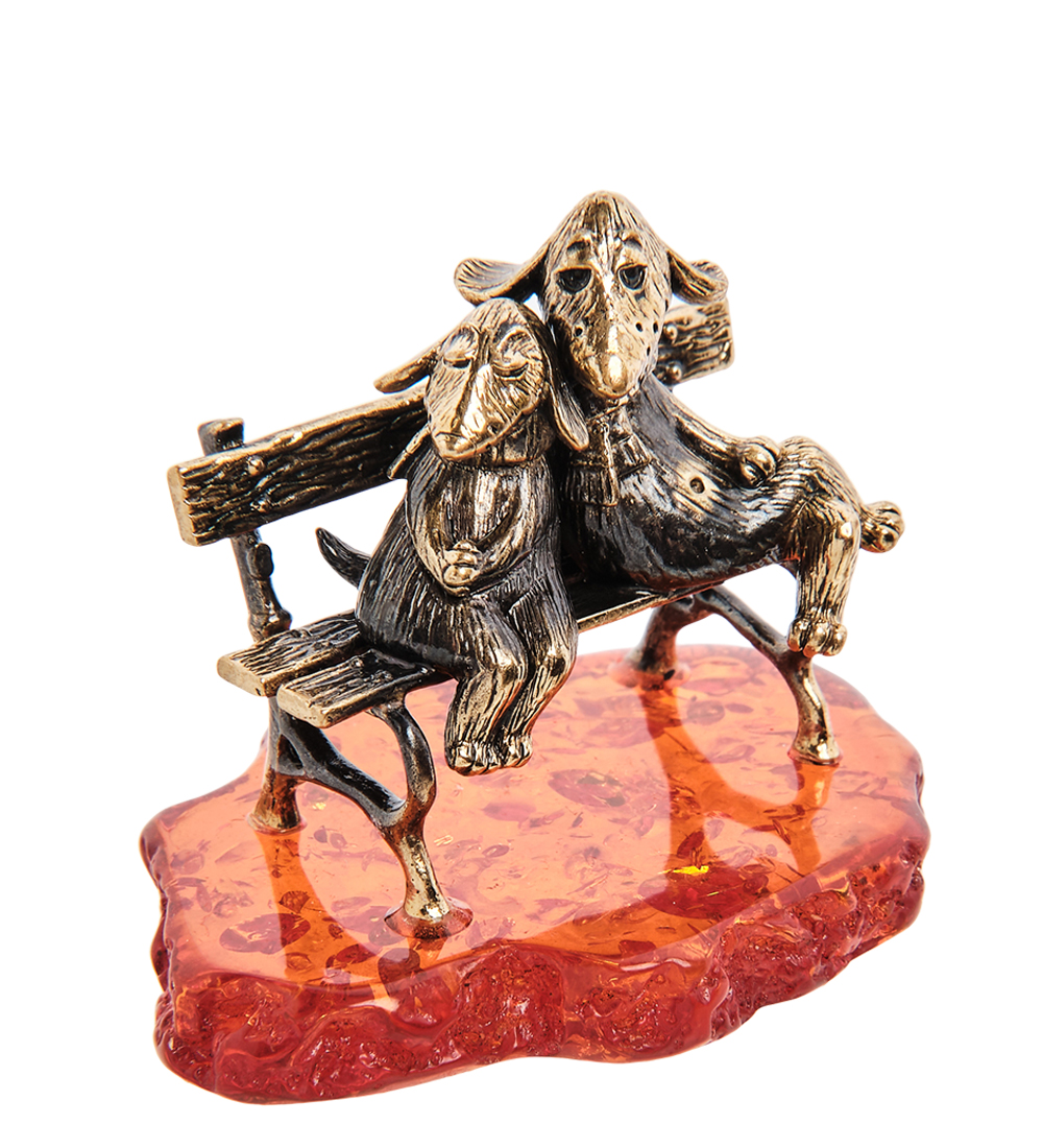AM- 354 Фигурка «Пара собак» (латунь, янтарь)