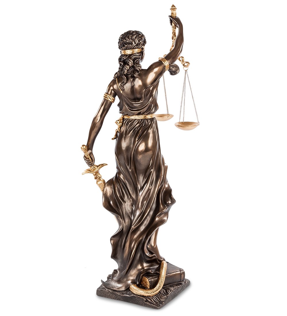 В Греческой мифологии Фемида - богиня правосудия. На глазах повязка, в одной руке меч, в другой весы - символы беспристрастия, с которыми она подходит к обвиняемым, взвешивая на весах доводы обвинения и защиты и карая мечом.