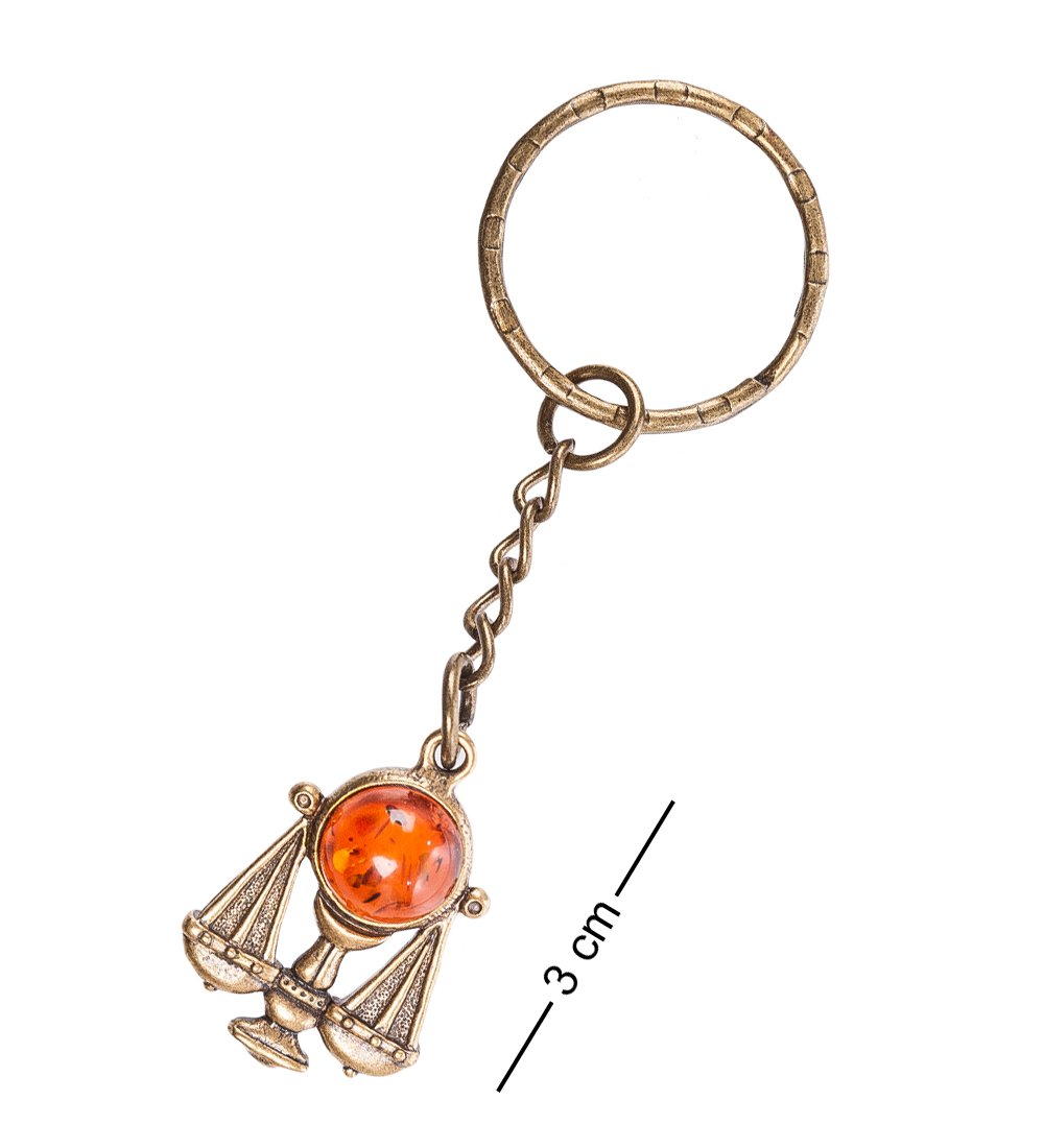 AM- 655 Брелок «Знак зодиака-Весы» (латунь, янтарь) нов.