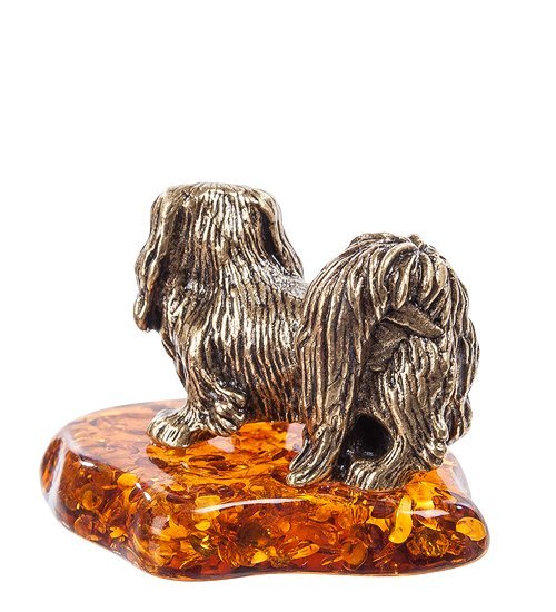AM- 698 Фигурка «Пекинес» (латунь, янтарь)
