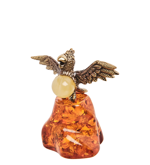 AM- 712 Фигурка «Попугай» (латунь, янтарь)