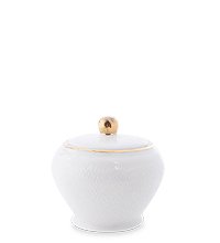 Этот элегантный чайный сервиз рассчитан на шесть персон. В него входят шесть чашечек с блюдечками, заварной чайник, сахарница и молочник. Все предметы выполнены из тончайшего белого фарфора, скромно украшенного позолотой: позолочены только ручки и шишечки на крышках чайника и сахарницы.