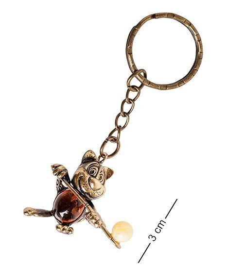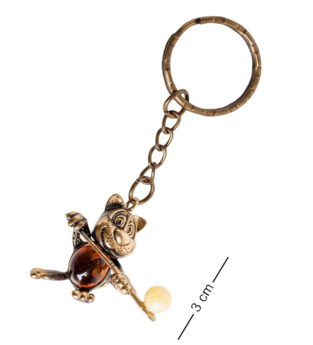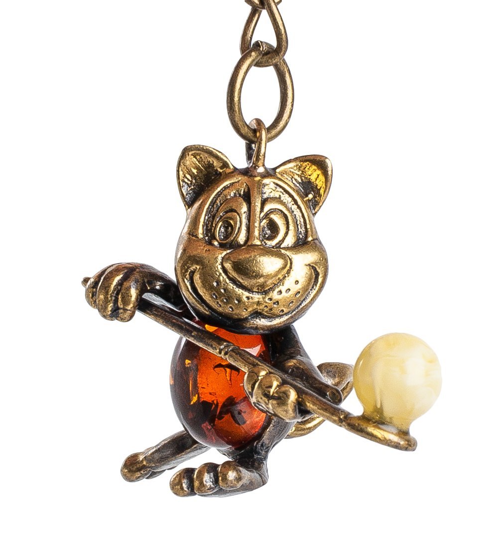 AM- 803 Брелок «Барсик хоккей на траве» (латунь, янтарь)