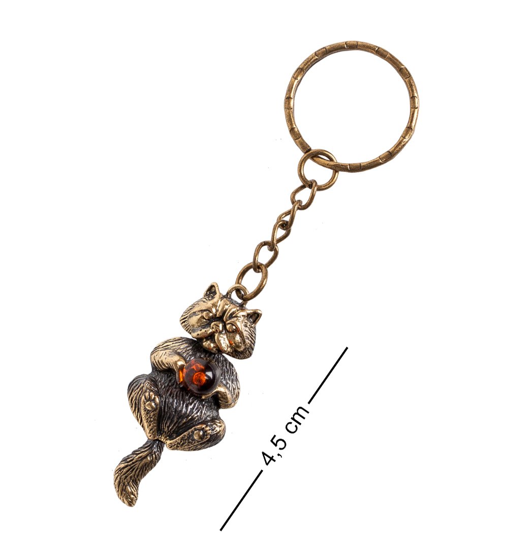 AM- 832 Брелок «Кот с шариком» (латунь, янтарь)