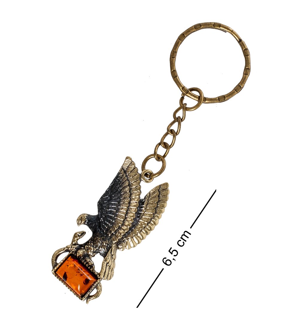 AM- 858 Брелок «Орел со змеёй» (латунь, янтарь)