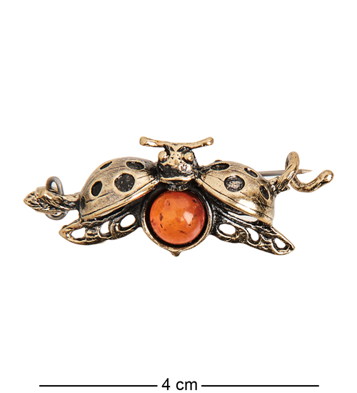 AM- 874 Брошь «Божья коровка» (латунь, янтарь)