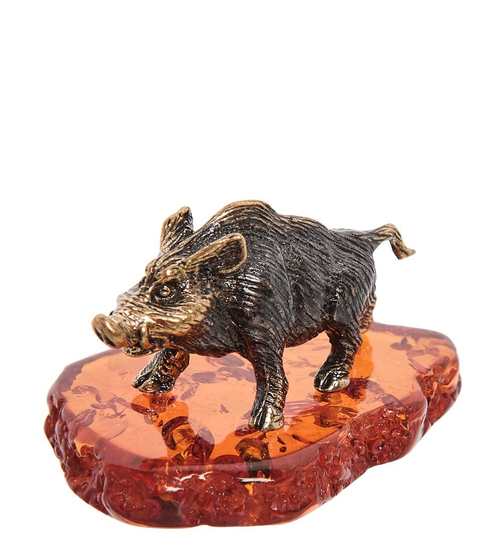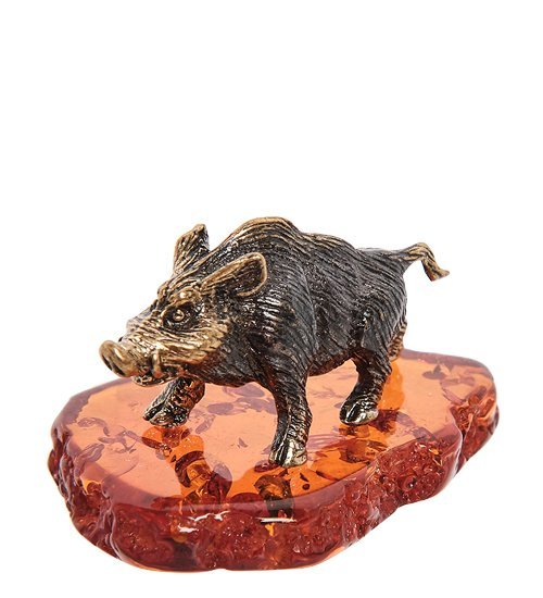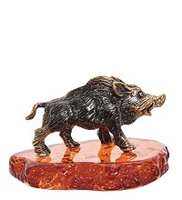AM- 996 Фигурка «Кабан» (латунь, янтарь)