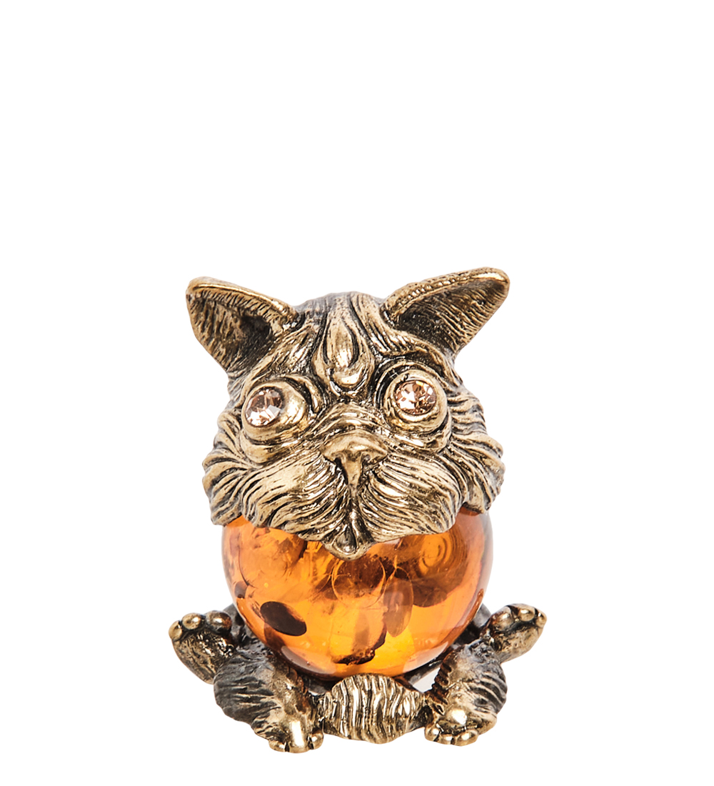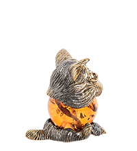AM-1029 Фигурка «Кот Мопсик» (латунь, янтарь)