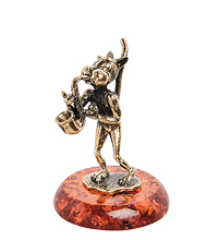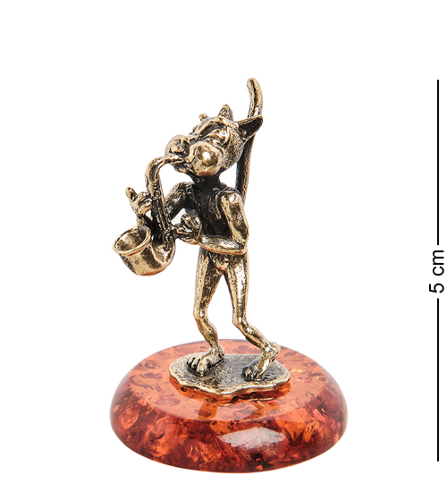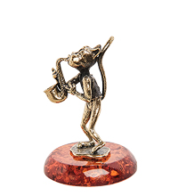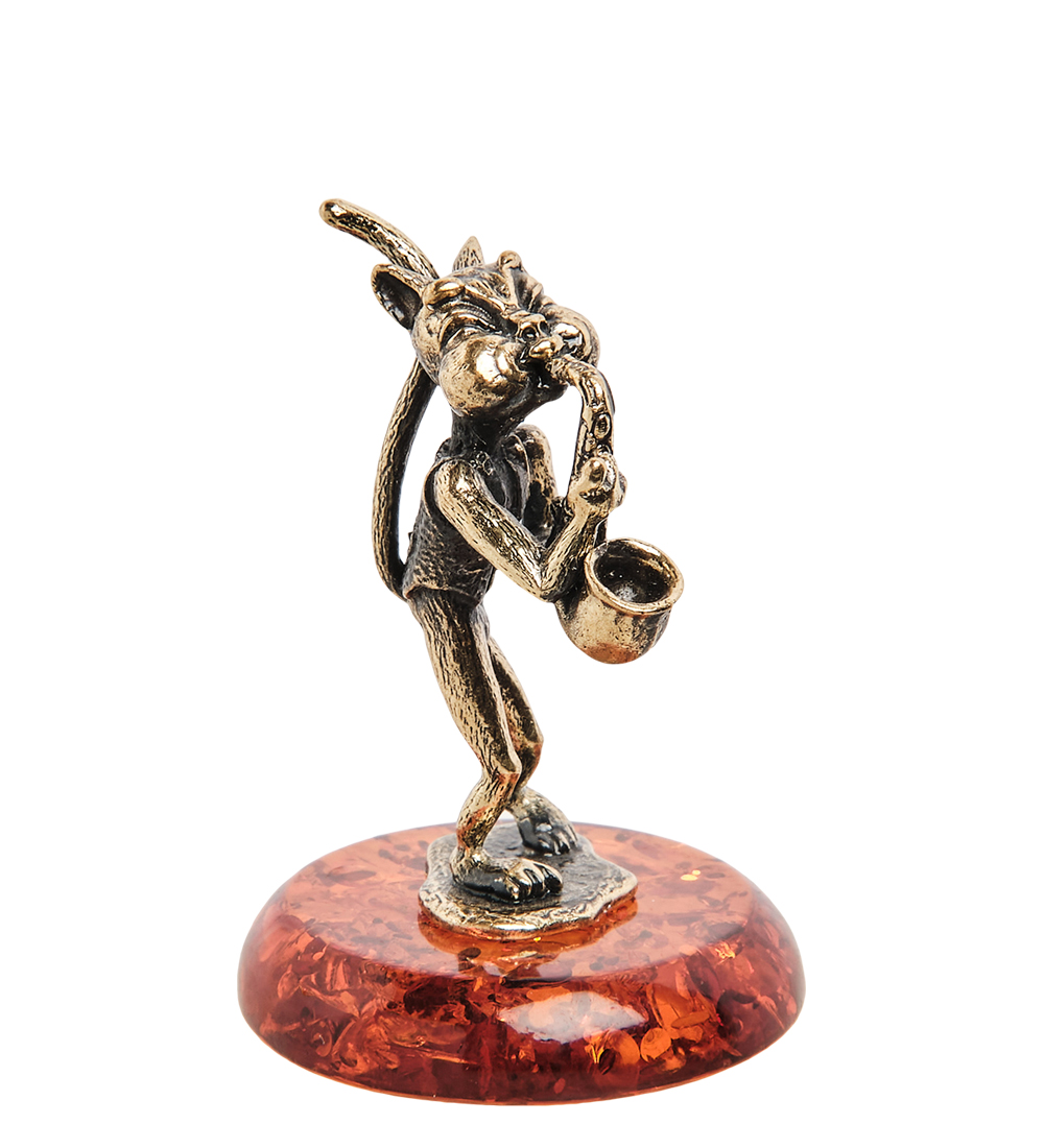 AM-1039 Фигурка «Кот с саксофоном» (латунь, янтарь)