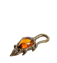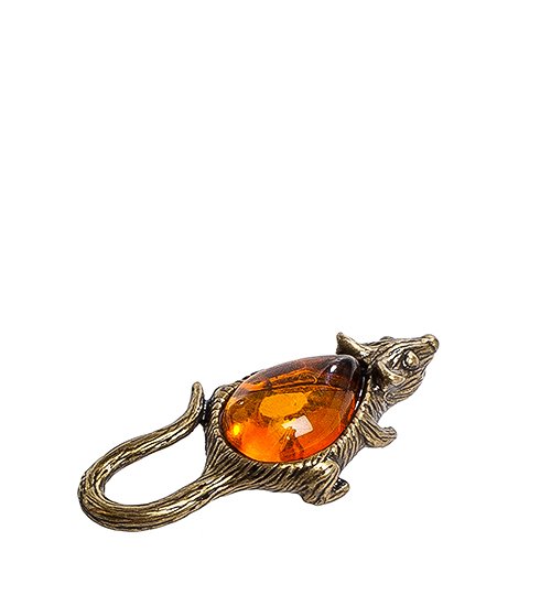 AM-1062 Фигурка кошельковая «Мышь» (латунь, янтарь)