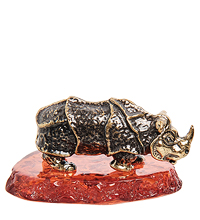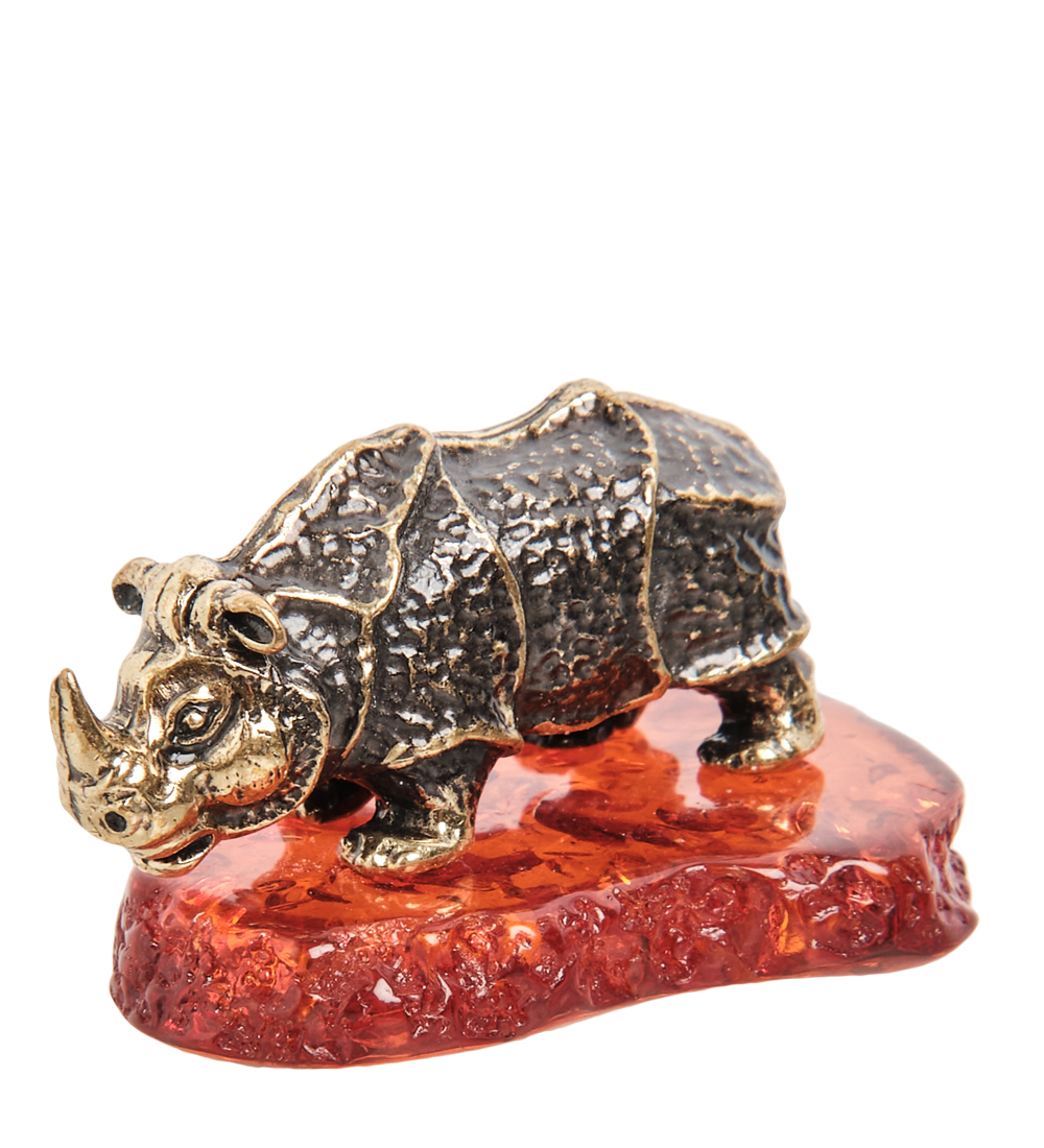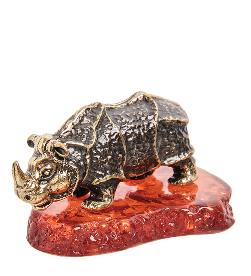 AM-1142 Фигурка «Носорог индийский» (латунь, янтарь)