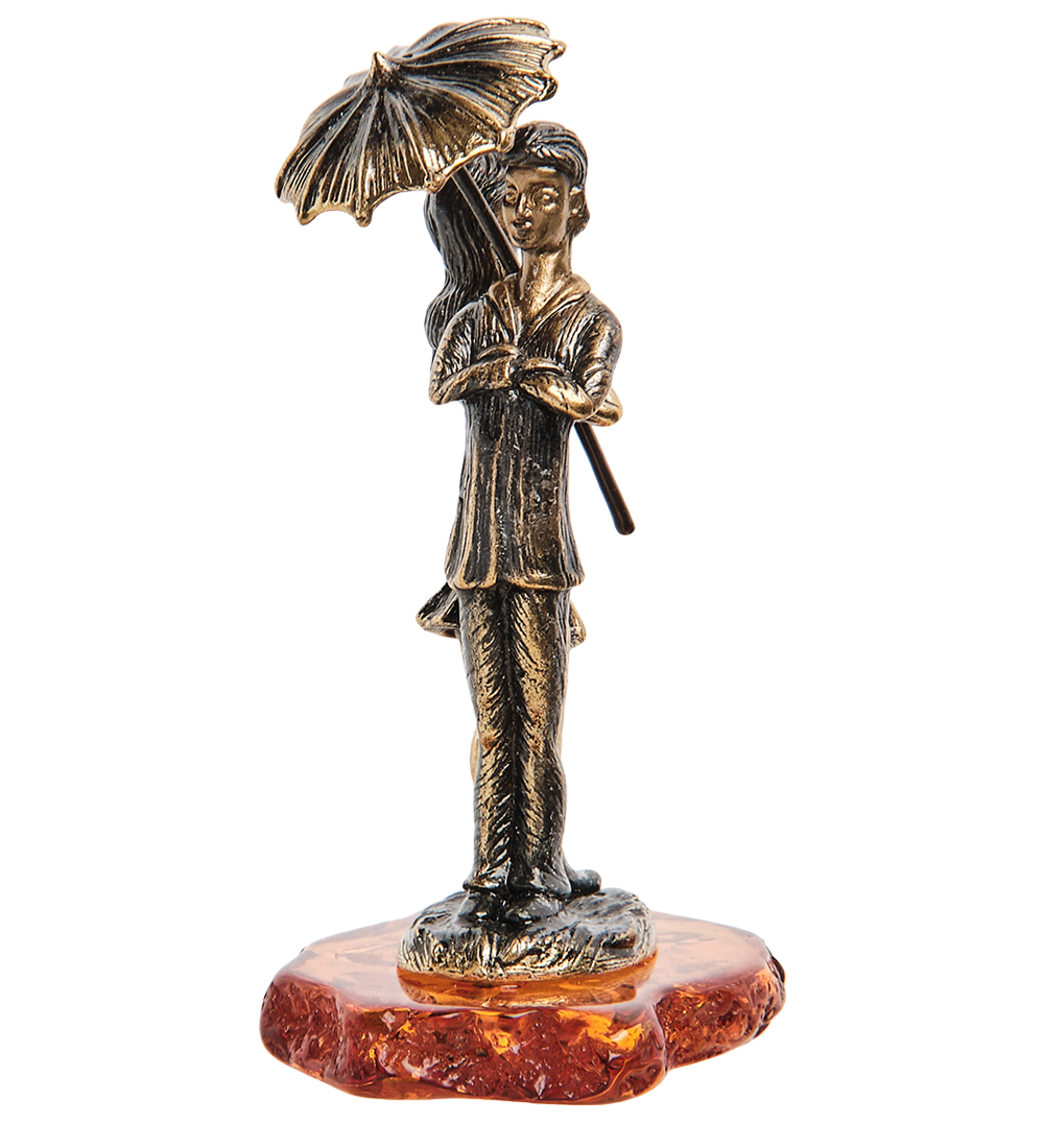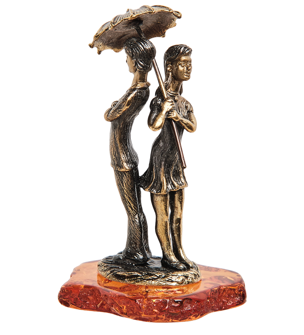 AM-1153 Фигурка «Парочка под зонтом» (латунь, янтарь)