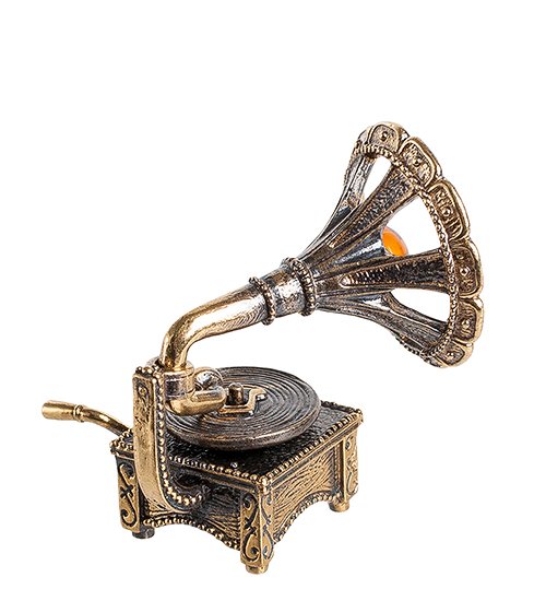 AM-1159 Фигурка «Патефон ажурный» (латунь, янтарь)