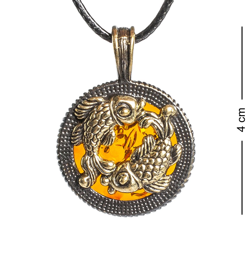 AM-1189 Подвеска «Знак зодиака-Рыбы» (латунь, янтарь)