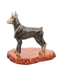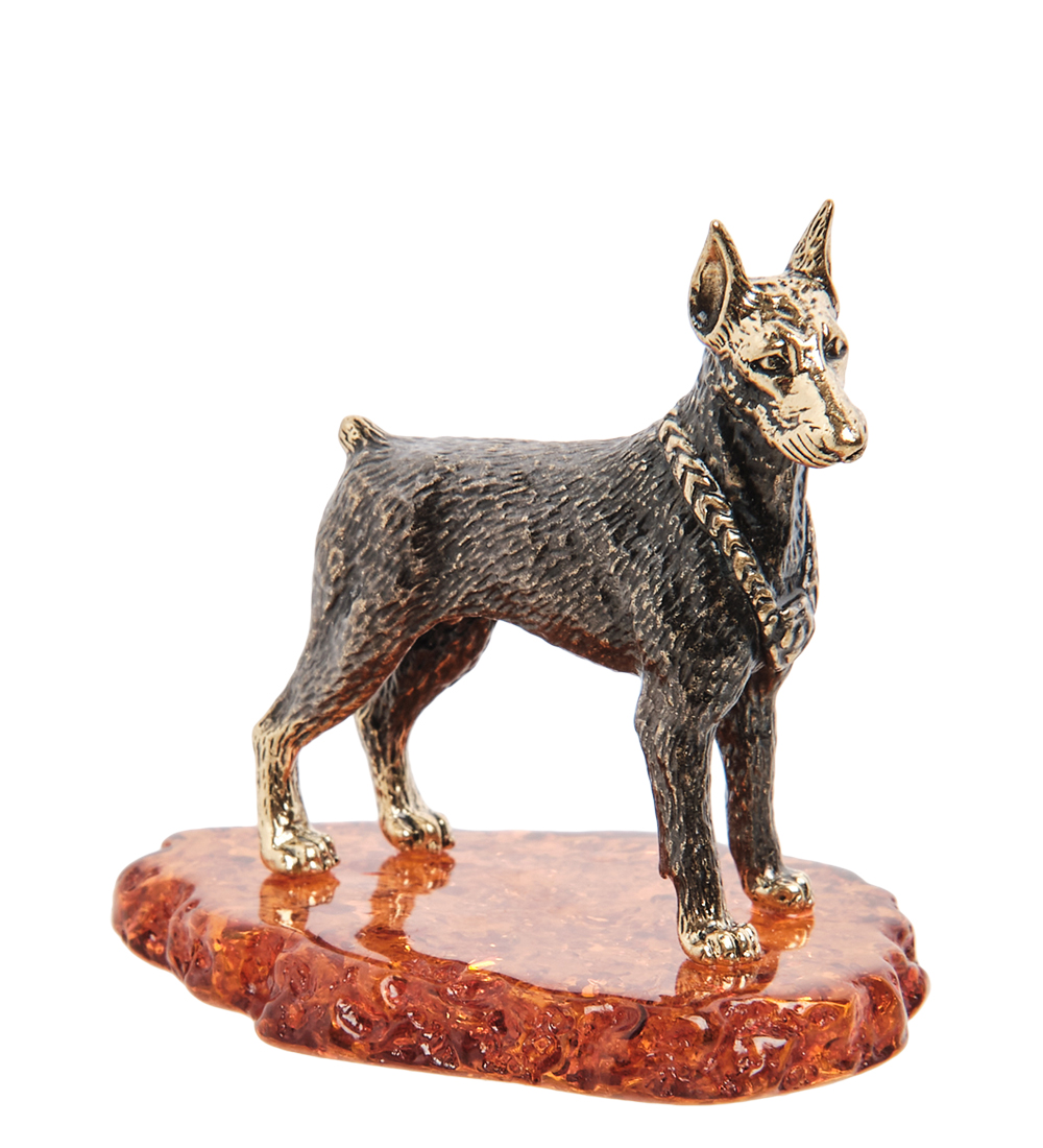 AM-1304 Фигурка «Доберман» (латунь, янтарь)