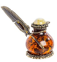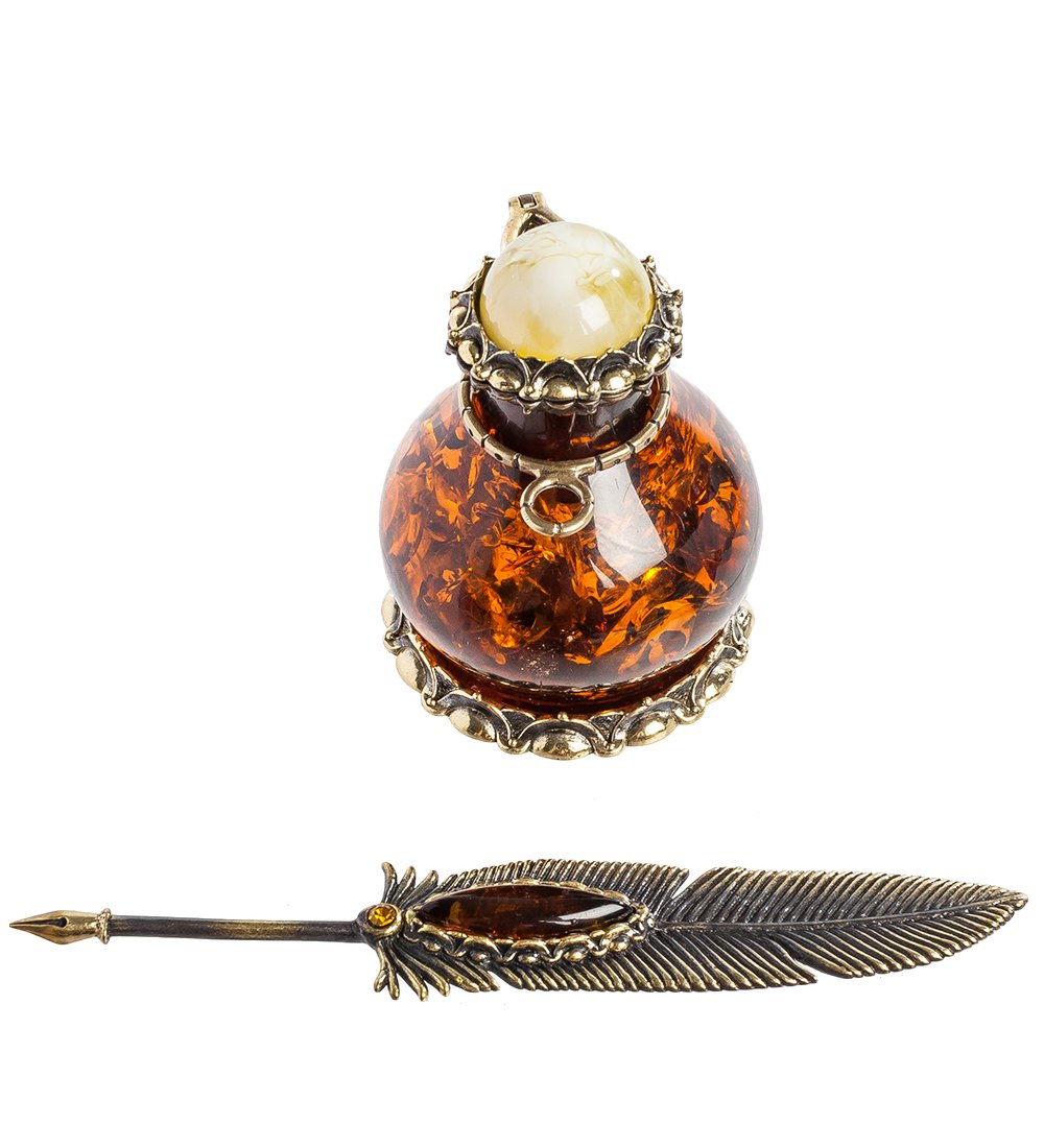 AM-1360 Чернильница «Ажурная» (латунь, янтарь)