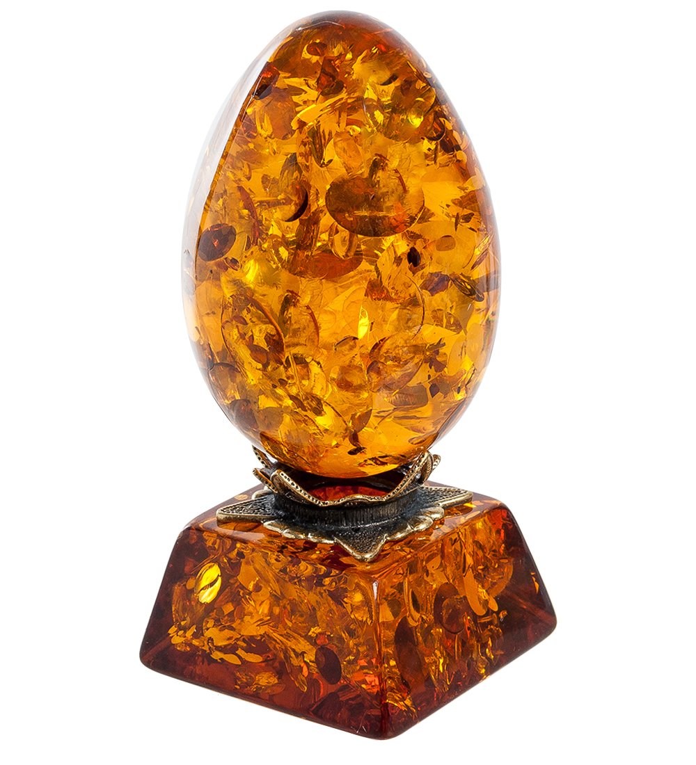 AM-1365 Фигурка «Яйцо с цветами» (латунь, янтарь)