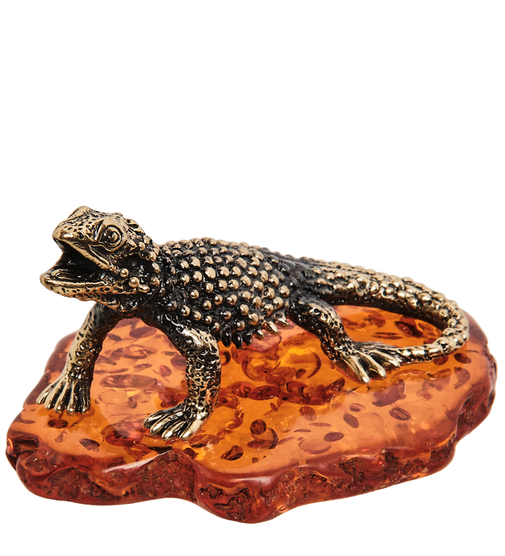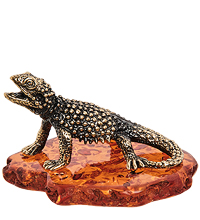 AM-1368 Фигурка «Ящерица» (латунь, янтарь)