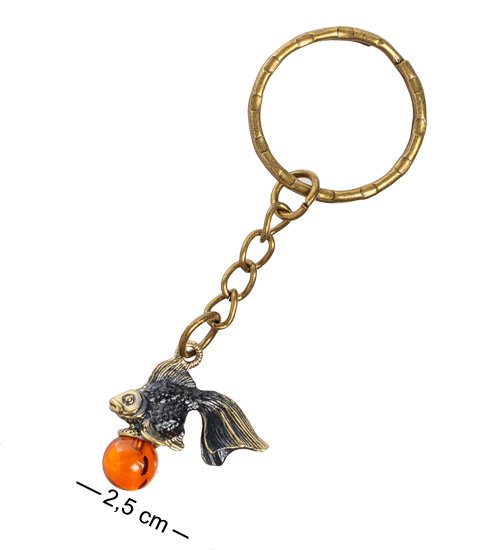 AM-1370 Брелок «Золотая рыбка» (латунь, янтарь)