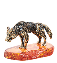 AM-1409 Фигурка «Волк» (латунь, янтарь)