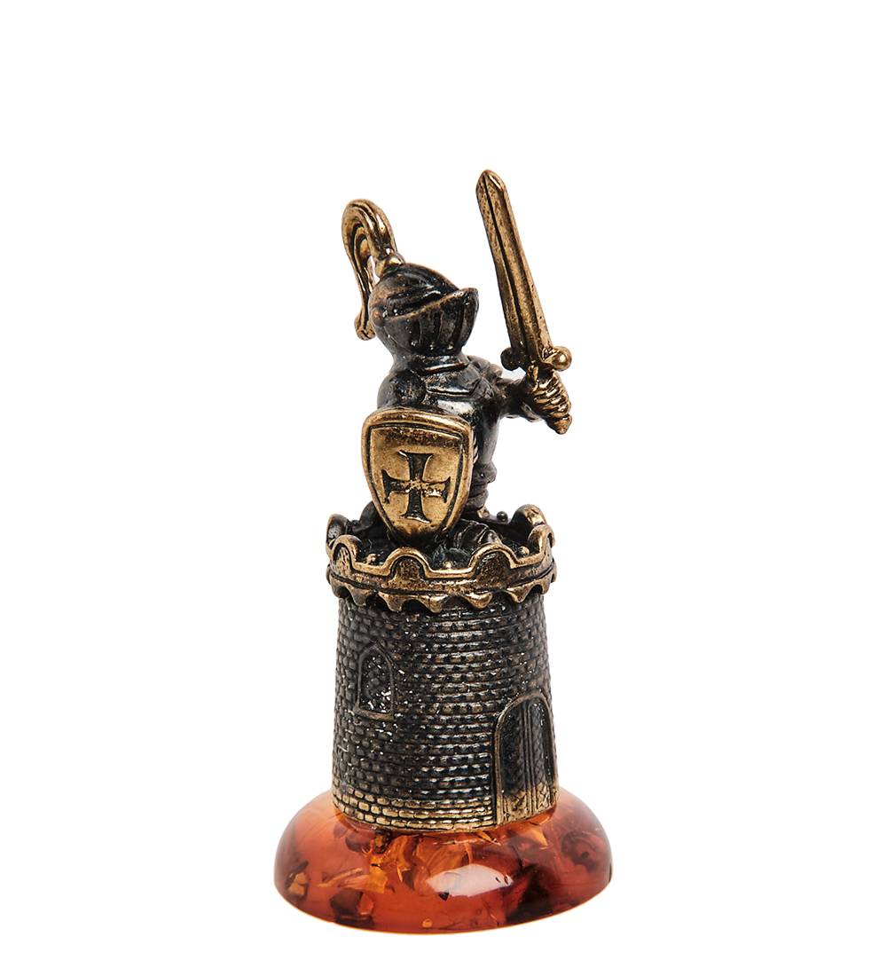 AM-1588 Фигурка «Рыцарь на подставке» (латунь, янтарь)