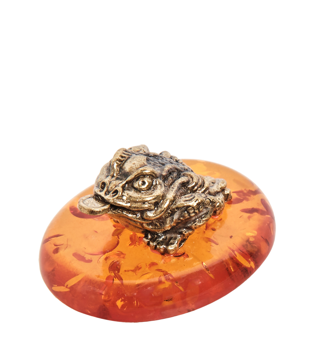 AM-1819 Фигурка «Лягушка фэншуй» (латунь, янтарь)